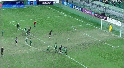 比赛第27分钟,张玉宁同样禁区外沿弧顶处远射,皮球被麦克阿瑟门将没收。